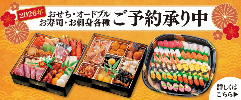 2026年 新年 おせち・お寿司・お刺身・オードブル各種 ご予約承り中! | 詳しくはこちらをご覧ください。